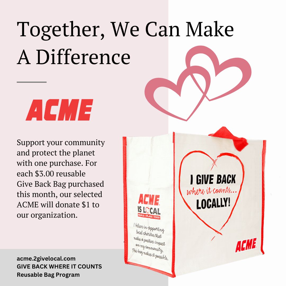The ACME Community Relations Team has selected Epworth United Methodist Church Food Rescue as a November 2024 GIVE BACK WHERE IT COUNTS Reusable Bag Program Nonprofit Partner. This means your organization will receive a $1 donation for every $3.00 GIVE BACK WHERE IT COUNTS Reusable Bag sold during November 2024 at: 18578 Coastal Highway #13, Rehoboth Beach DE