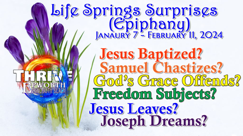 We continue this worship year gathered around the theme of thriving in our faith and life. This Epiphany worship series explores God’s invitation to thrive at Epworth as we expect and cooperate with the ubiquitous element of surprise in life. As we grow, we not only catalogue patterns in life that allow us to predict how the future will unfold. We also learn that for every rule there are (sometimes miraculous) exceptions. We gather around stories of the surprising ways God’s love manifests in the lives of heroes in faith – including the greatest hero of all.