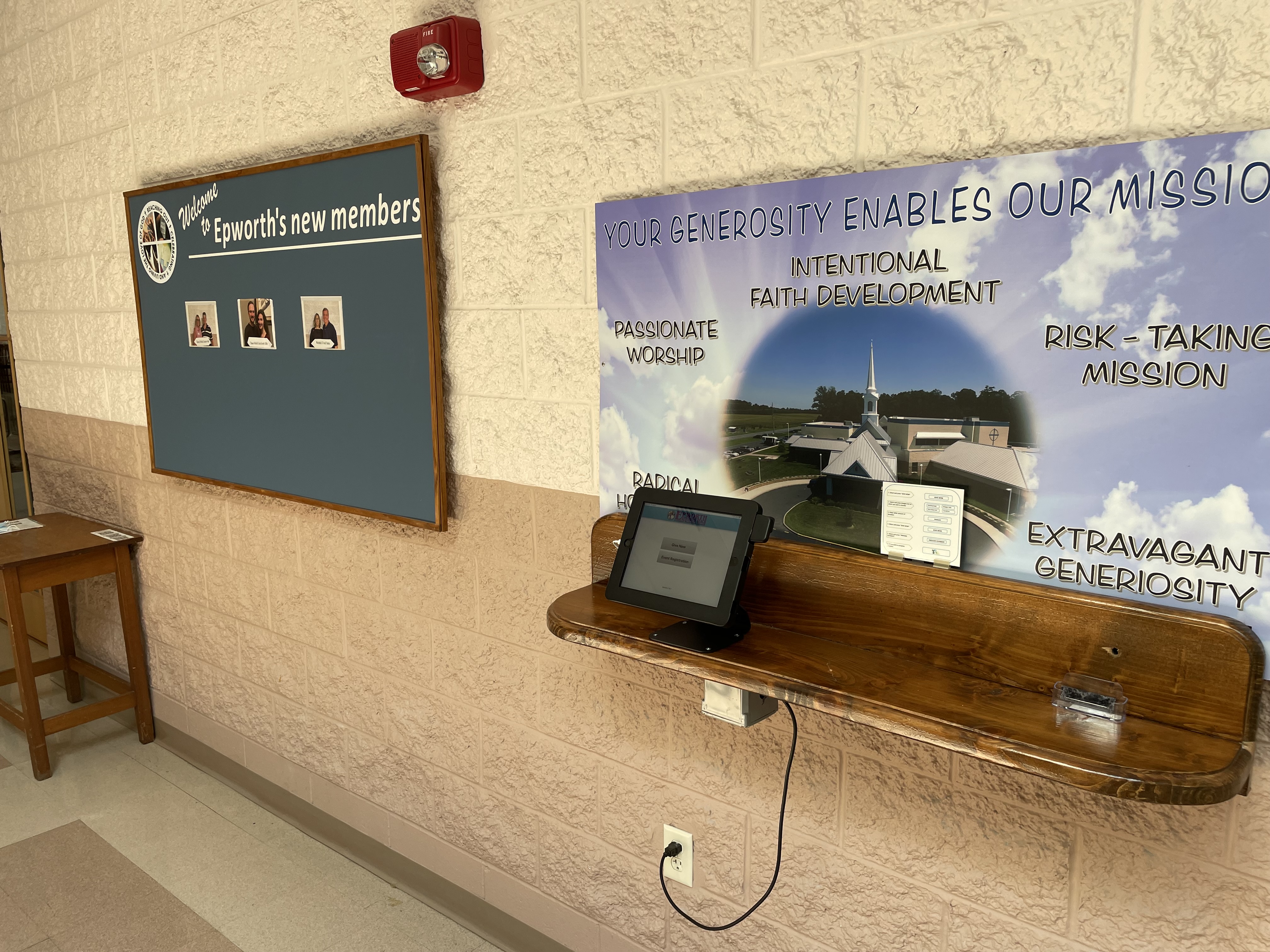 Our giving kiosk is back! After several weeks of troubleshooting an iPad failure, investigating replacement options and waiting on parts to arrive from four different vendors, we are back online in the lobby/narthex. In order to make a contribution or to register for an Epworth event, simply tap the go button twice (to wake up the iPad) or tap the “Give Now” or “Event Registration” button.